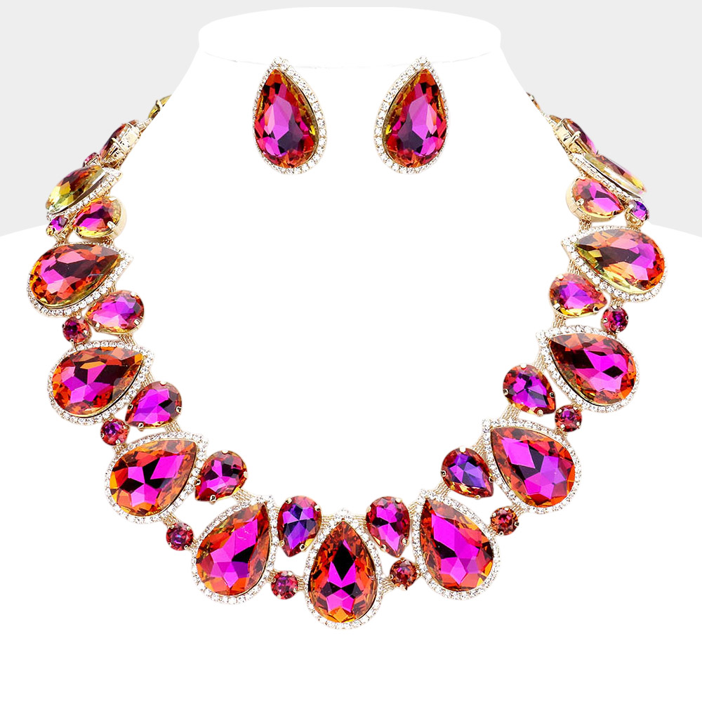 Crystal Rhinestone Trim Teardrop Collar Evening Necklace