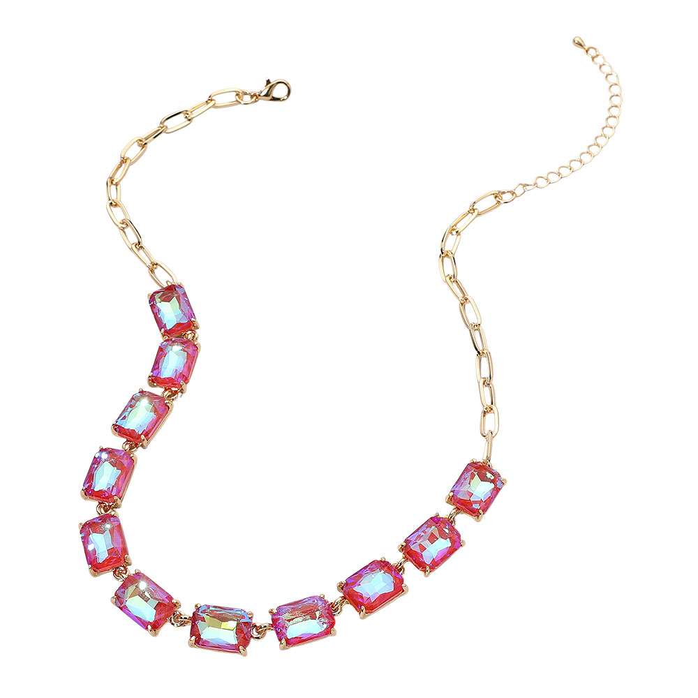 Cushion Rectangular Stone Cluster Link Evening Necklace