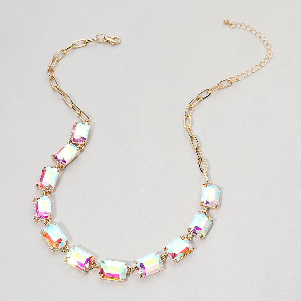 Cushion Rectangular Stone Cluster Link Evening Necklace