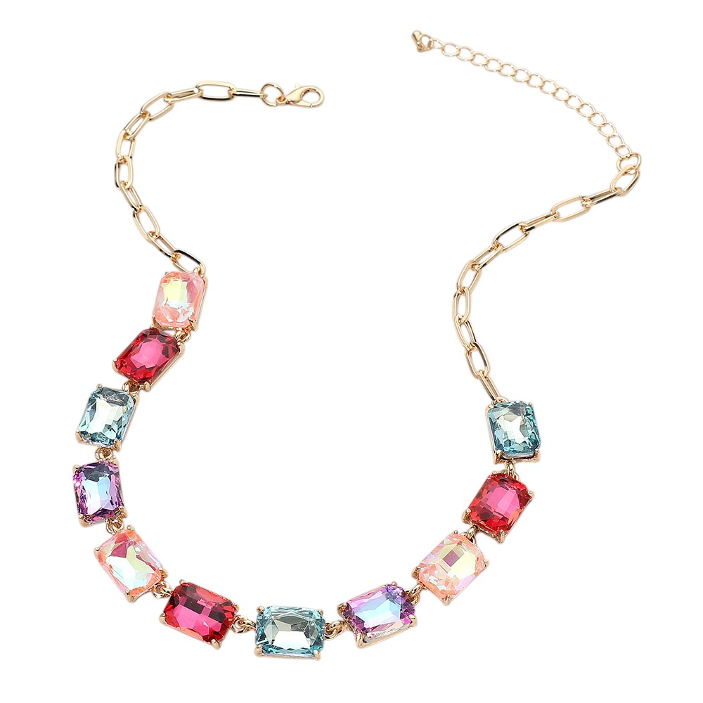 Cushion Rectangular Stone Cluster Link Evening Necklace