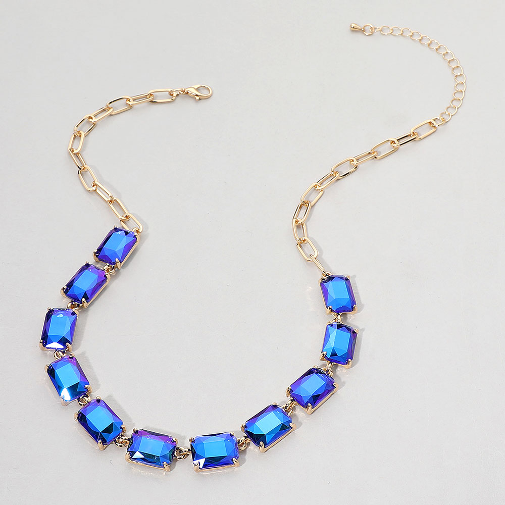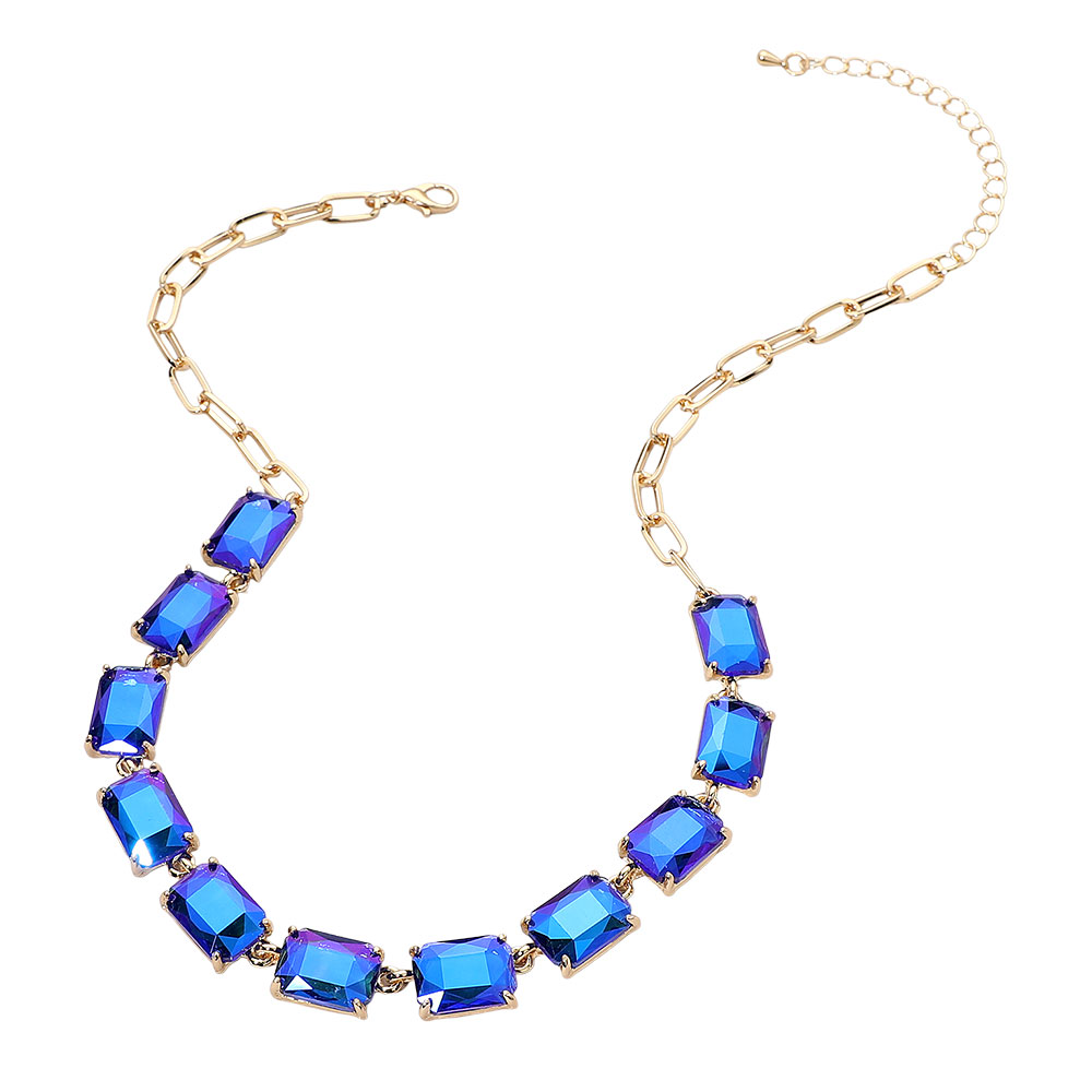 • This elegant gemstone chain necklace features a row of precisely cut stones linked with a sleek chain for a refined, modern look. Its adjustable closure ensures a comfortable fit, making it a sophisticated accessory for formal occasions, evening wear, or adding a statement touch to everyday style.