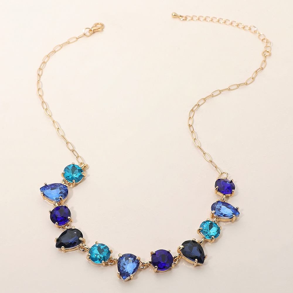 Cushion Teardrop Round Oval Stone Link Evening Necklace