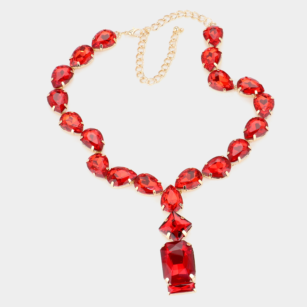 Emerald Cut Stone Cluster Pendant Pointed Teardrop Stone Cluster Link Evening Necklace