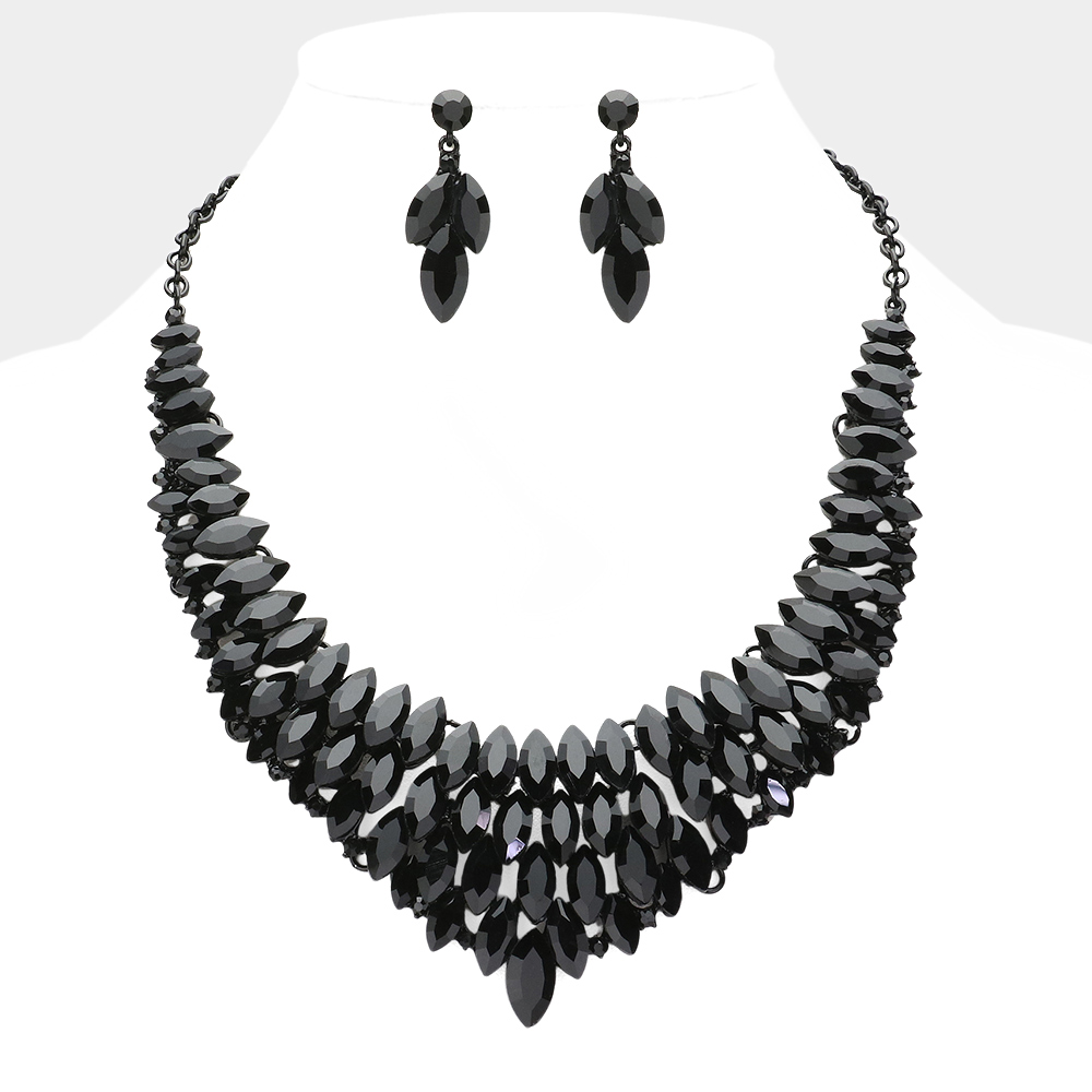 Marquise Stone Cluster Embellished Collar Evening Necklace