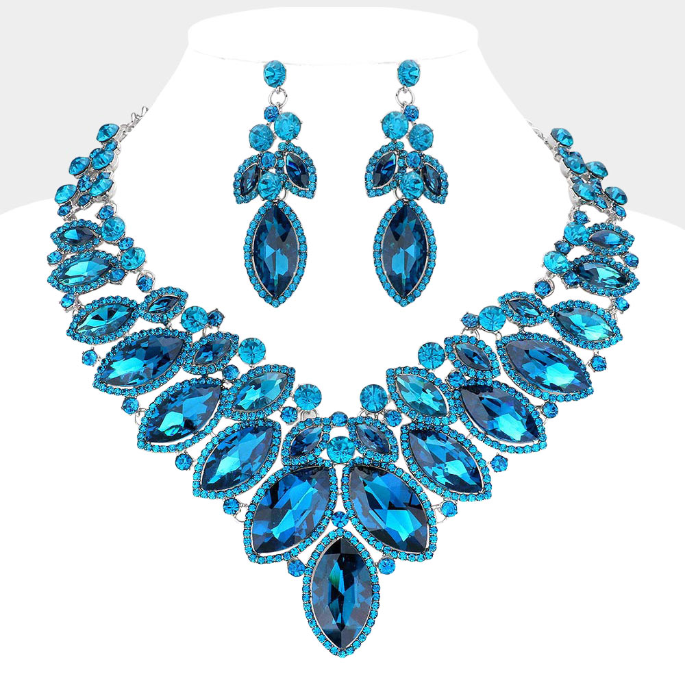Oval Stone Accented Rhinestone Trimmed Necklace