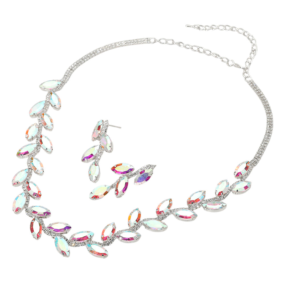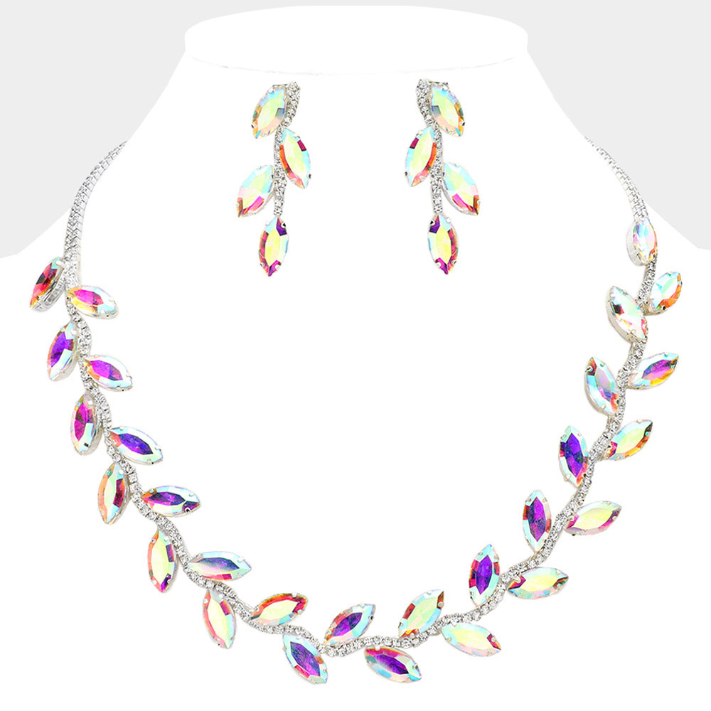 Marquise Stone Cluster Embellished Evening Necklace