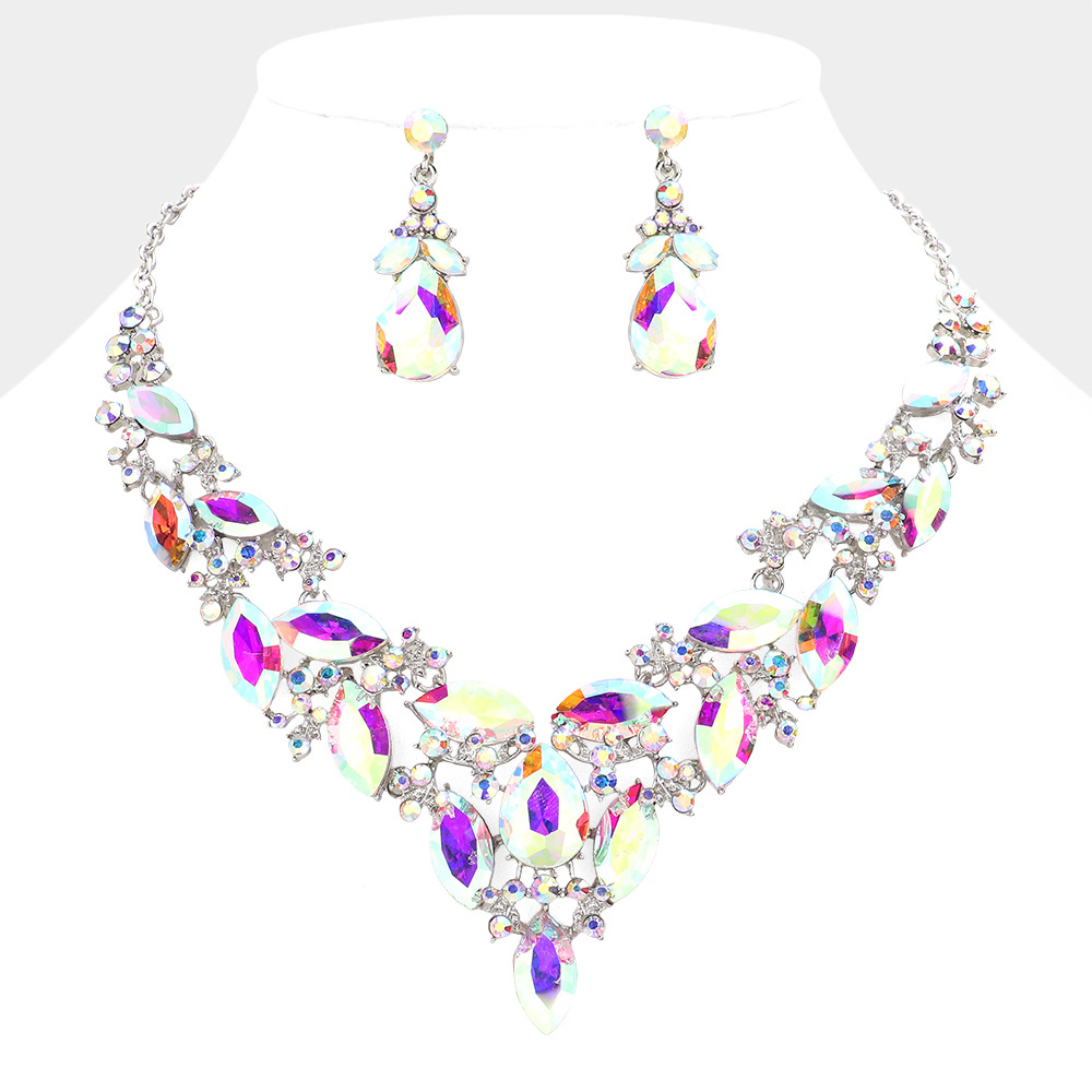 Rhinestone Pave Fringe Necklace & Clip Earring Set