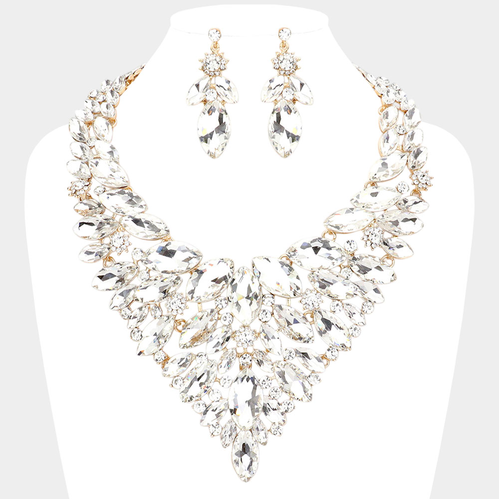 Marquise Stone Cluster Statement Evening Necklace