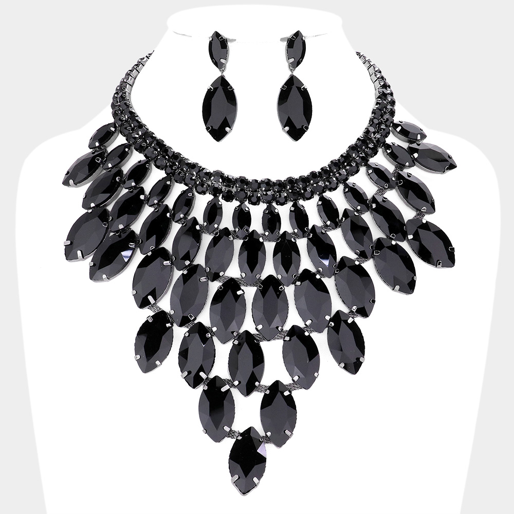 Glass Crystal Double Teardrop Clip on Evening Earrings
