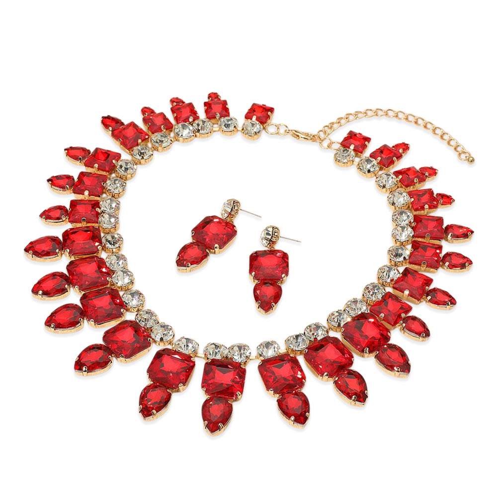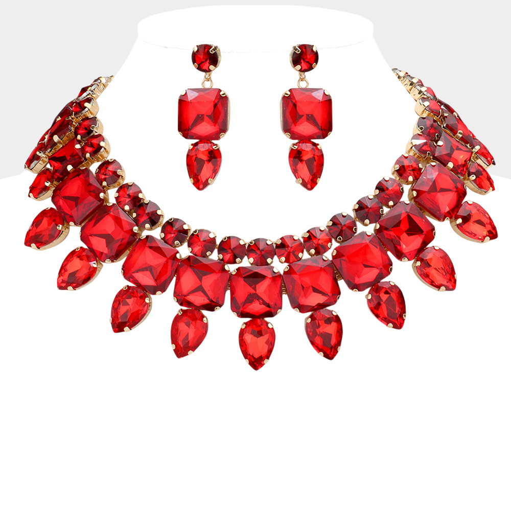 • Stunning statement jewelry set featuring a dramatic necklace and matching earrings adorned with large gemstones. Perfect for special occasions, parties, or evening events, adding glamour and sophistication to any outfit. A show-stopping accessory for an elegant, confident look.