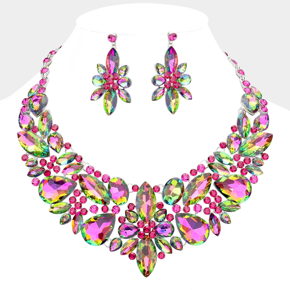 Teardrop Stone Cluster Embellished Evening Necklace