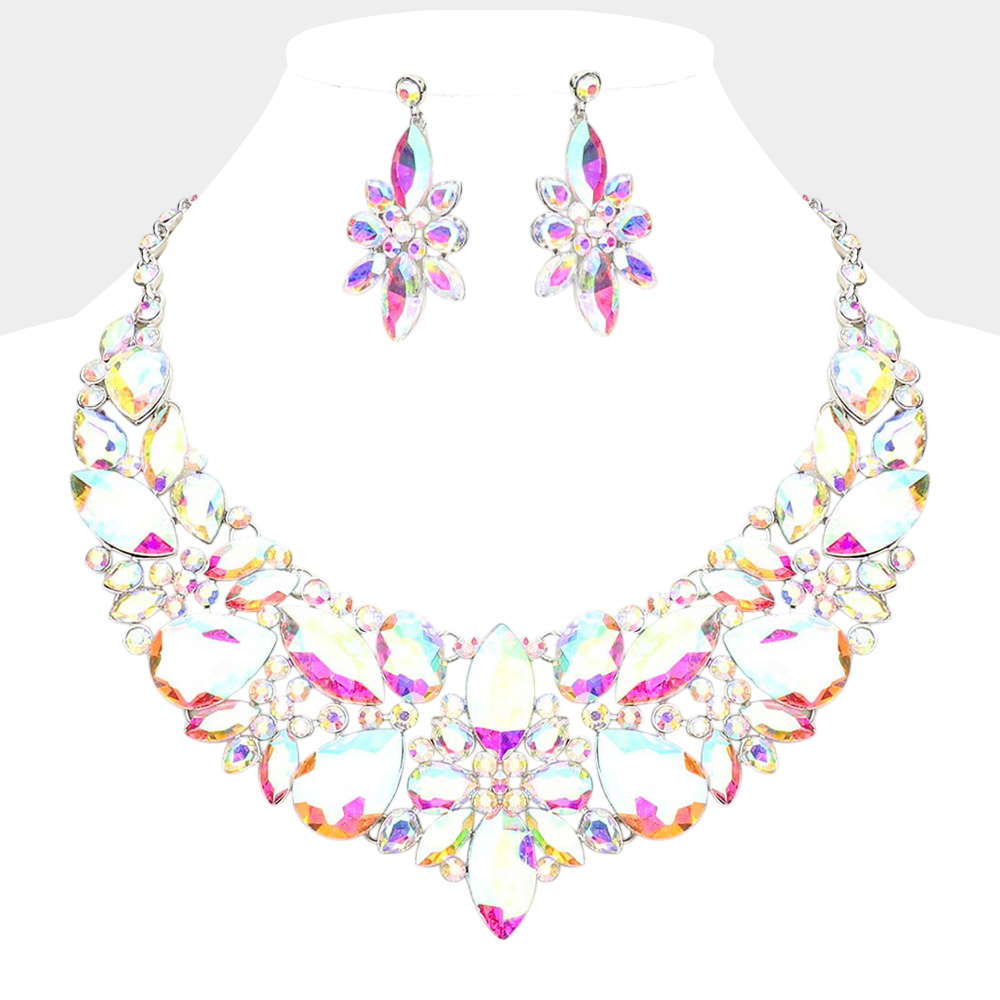 Details • Necklace Size : 17" + 3" L • Decor Size : 2.4" L • Earring Size : 2" L • Dazzle in timeless elegance with this rhinestone statement necklace and earring set. Featuring bold clustered crystals in a floral-inspired design, this matching set is perfect for weddings, galas, and special occasions. The adjustable necklace ensures a comfortable fit, while the lightweight earrings add just the right amount of sparkle. A must-have for bridal looks, evening wear, or anyone wanting to make a glamorous entrance.