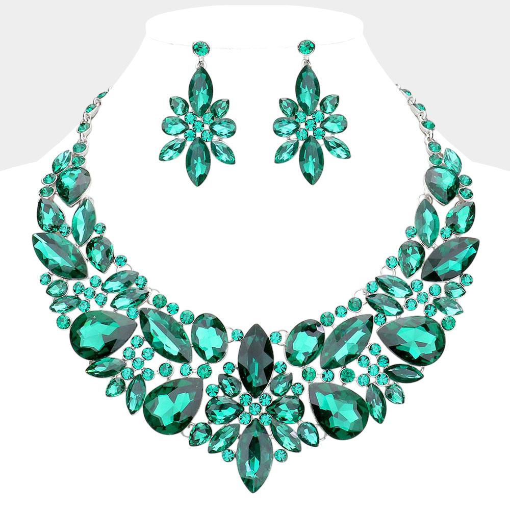Marquise Stone Cluster Accent Rhinestone Paved Jewelry Set