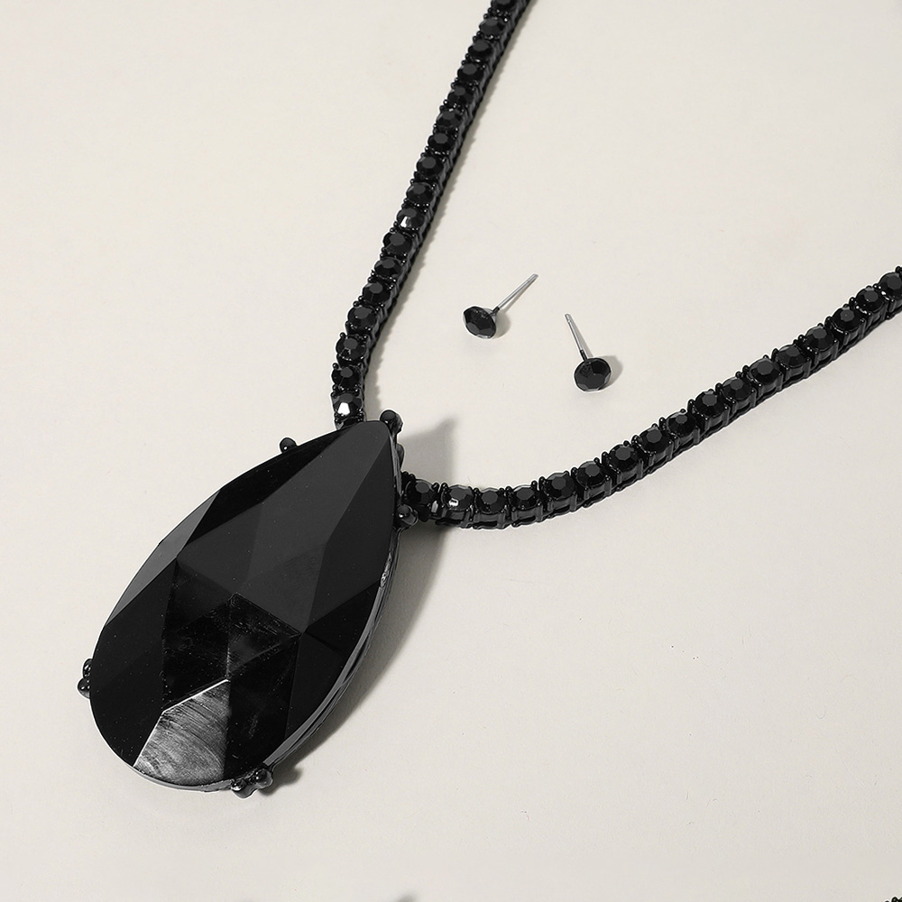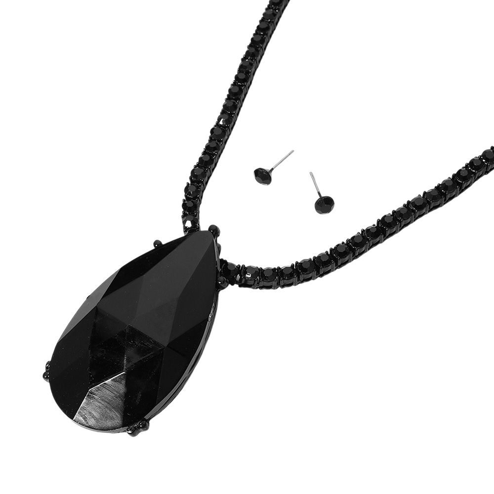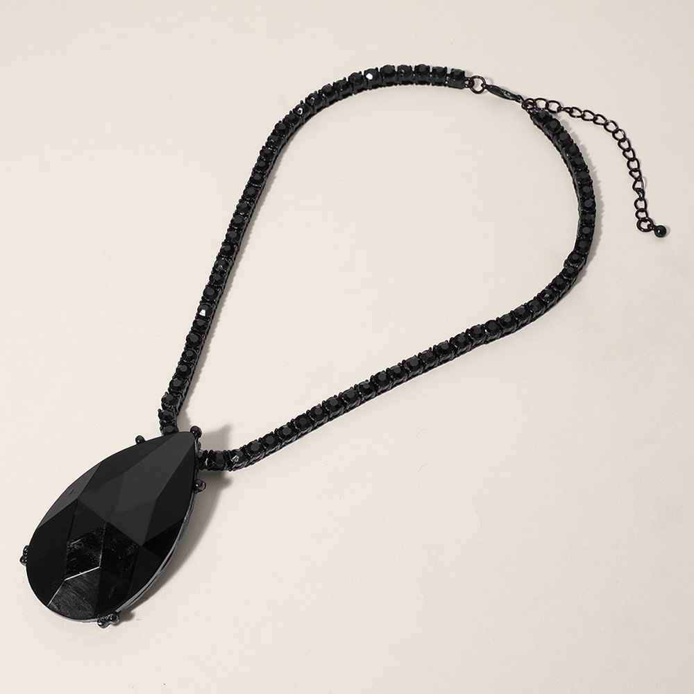 Oversized Teardrop Glass Stone Pendant Bling Studded Chunky Chain Necklace