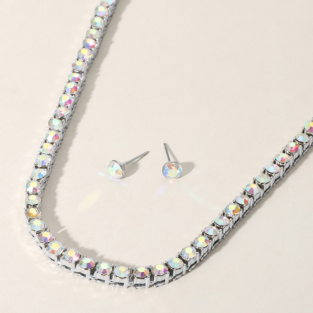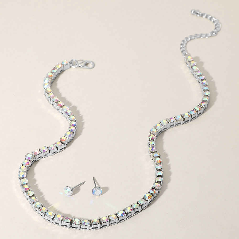• Elevate your style with this rhinestone necklace and matching earrings set. Designed with sparkling stones and a classic silhouette, it’s the perfect accessory for evening wear, parties, or as a thoughtful jewelry gift for someone special.