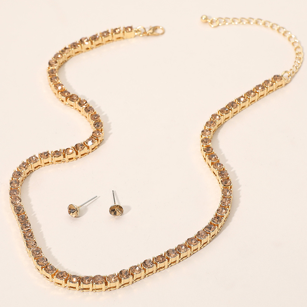 • Elevate your style with this rhinestone necklace and matching earrings set. Designed with sparkling stones and a classic silhouette, it’s the perfect accessory for evening wear, parties, or as a thoughtful jewelry gift for someone special.