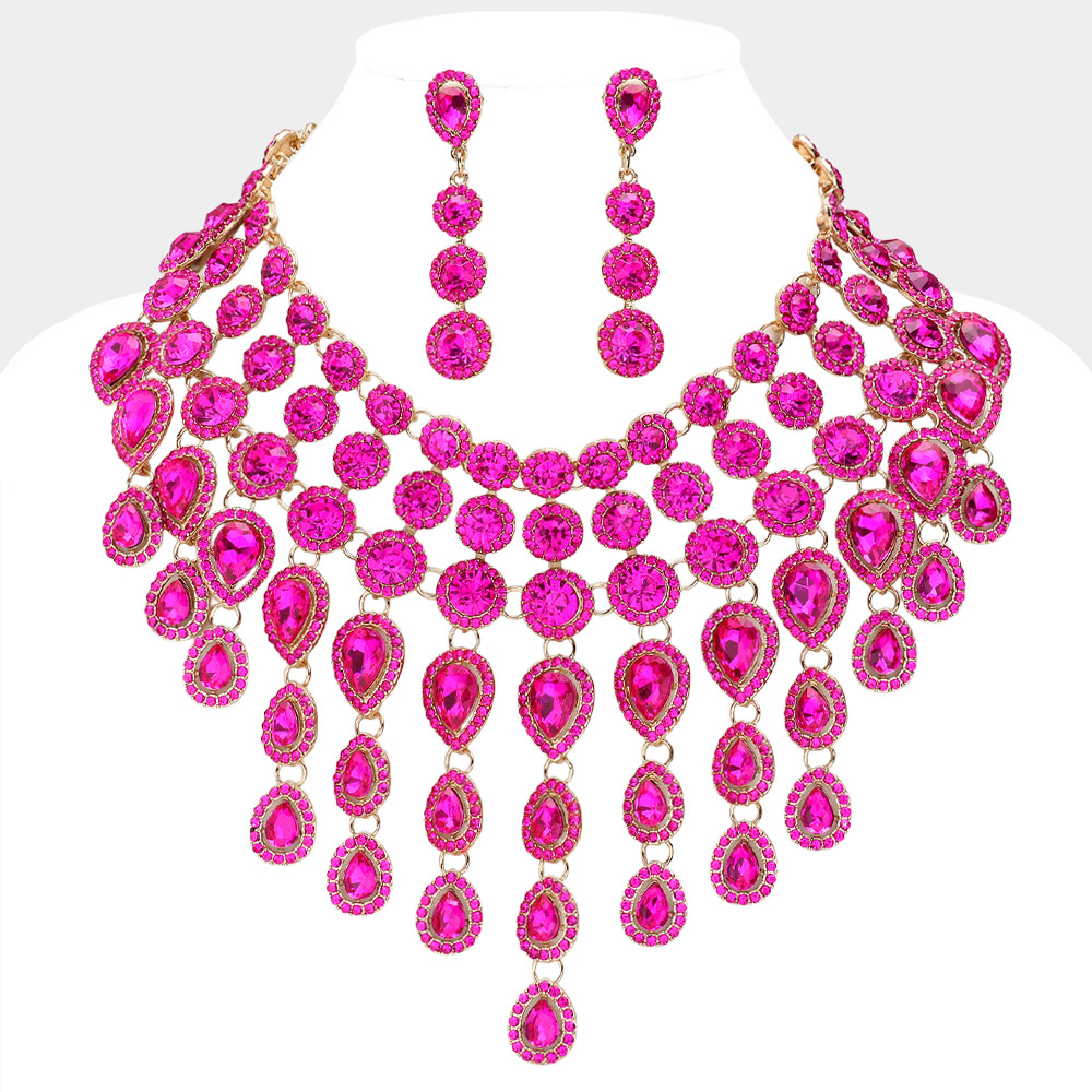 Round Teardrop Stone Cluster Evening Bib Necklace