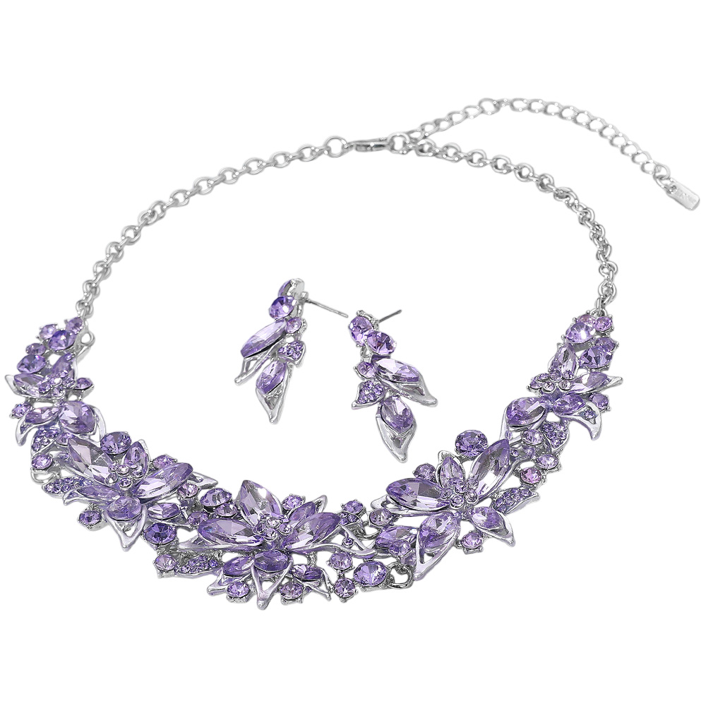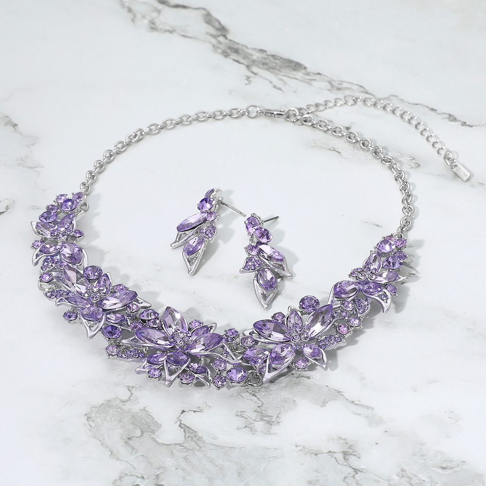Teardrop Stone Cluster Accent Rhinestone Ornate Scrollwork Rhinestone Necklace