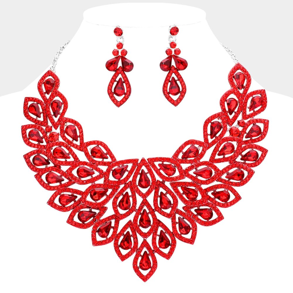Teardrop Centered Rhinestone Trimmed Cluster Evening Necklace Teardrop Centered Rhinestone Trimmed Cluster Evening Necklace Teardrop Centered Rhinestone Trimmed Cluster Evening Necklace