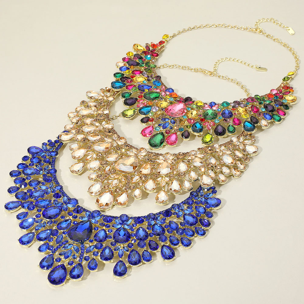 Teardrop Stone Cluster Embellished Statement Evening Necklace