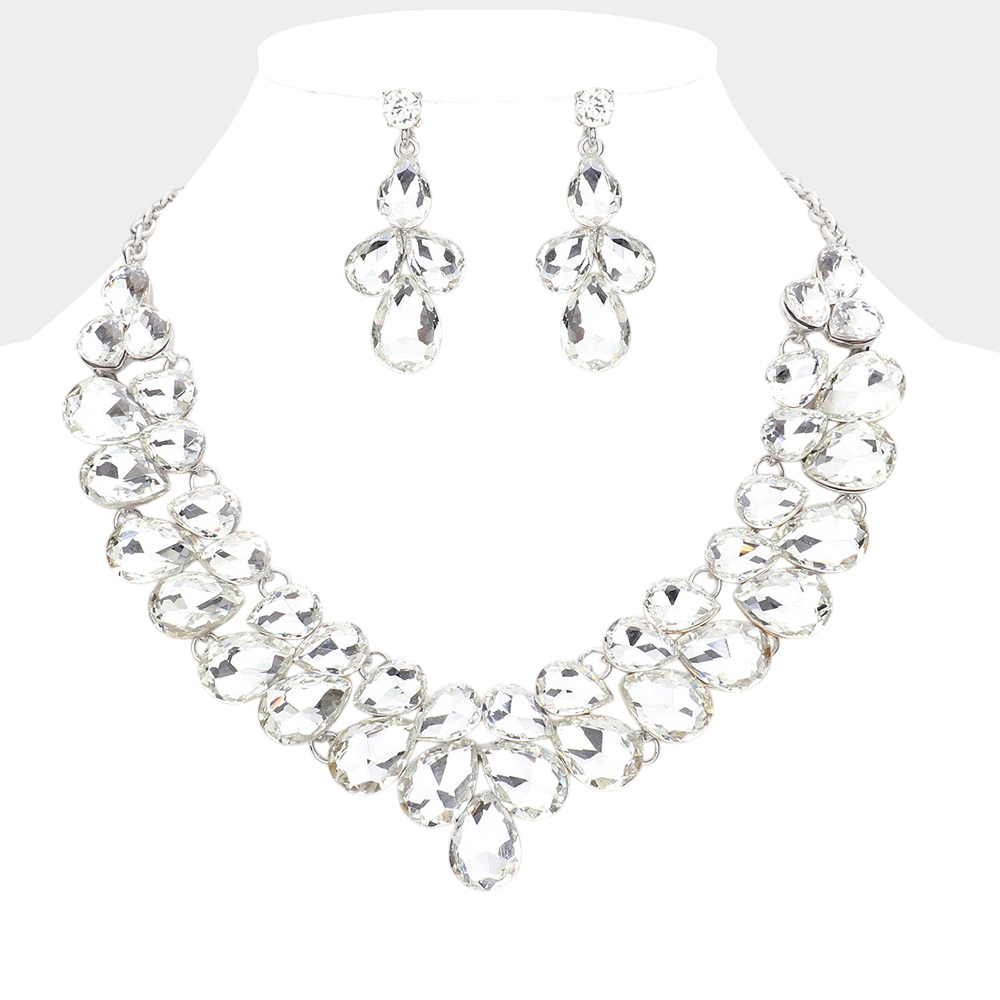 Teardrop Marquise Stone Cluster Open Heart Dangle Evening Earrings
