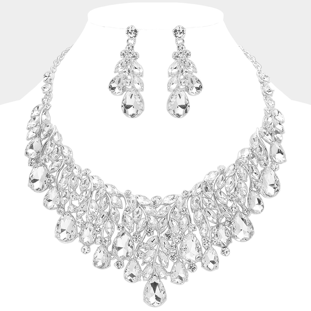 • Exquisite statement necklace and matching earrings featuring a stunning teardrop gem cluster design. Perfect for formal occasions, weddings, or evening events, this jewelry set adds instant glamour and sophistication to any outfit with its luxurious sparkle and refined detailing.