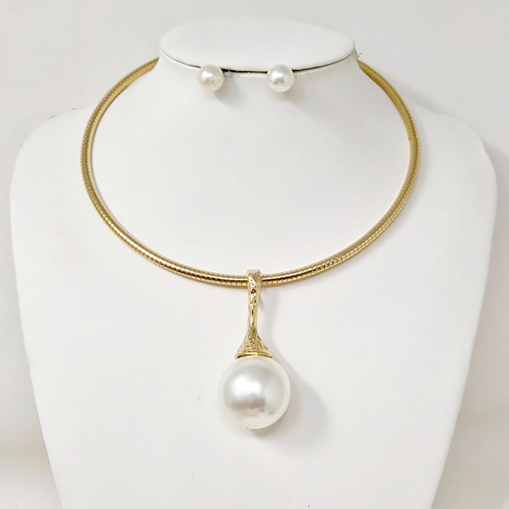 Bold Pearl Pendant Accent Statement Choker Necklace