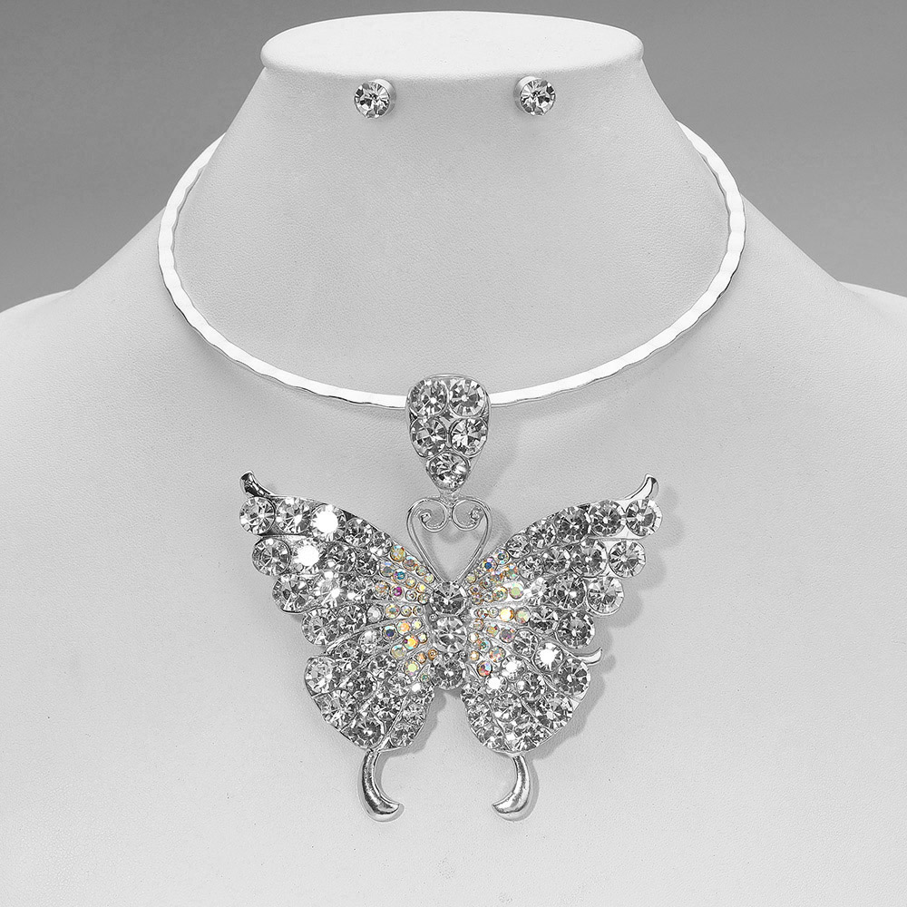 Bold Stone Embellished Butterfly Pendant Statement Choker Necklace