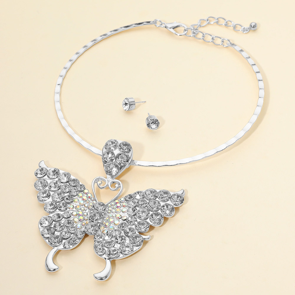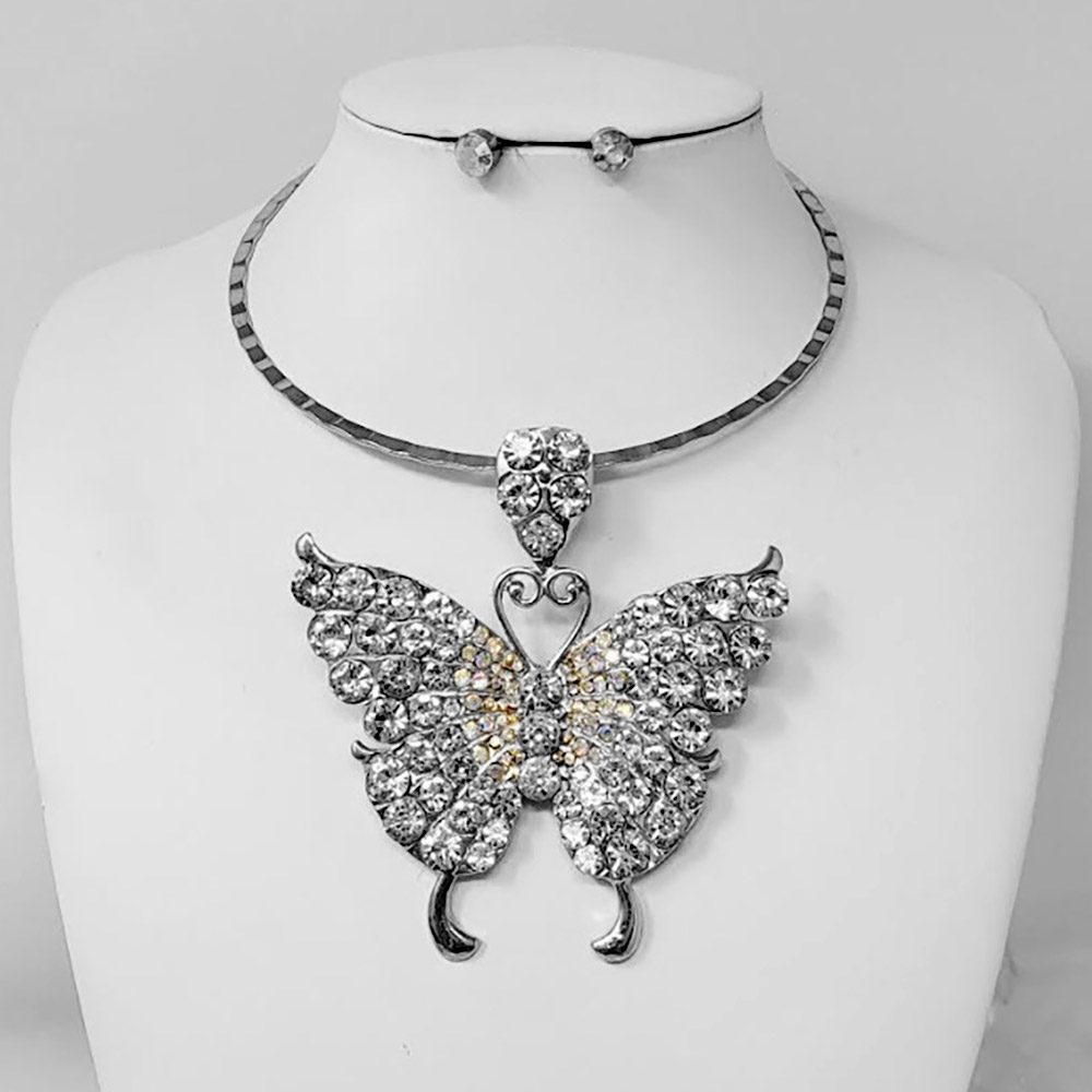• Shine with elegance in this butterfly pendant necklace paired with matching stud earrings. Adorned with sparkling details, this set is perfect for special occasions, weddings, or evening events. A statement accessory that adds glamour and sophistication, making it a must-have jewelry set.