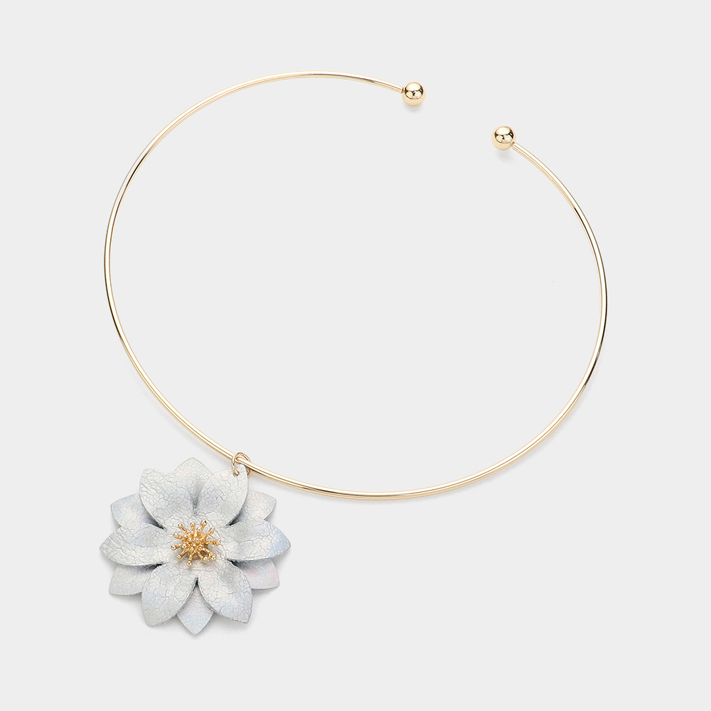 Faux Leather Back Mirror Beaded Floral Dangle Earrings