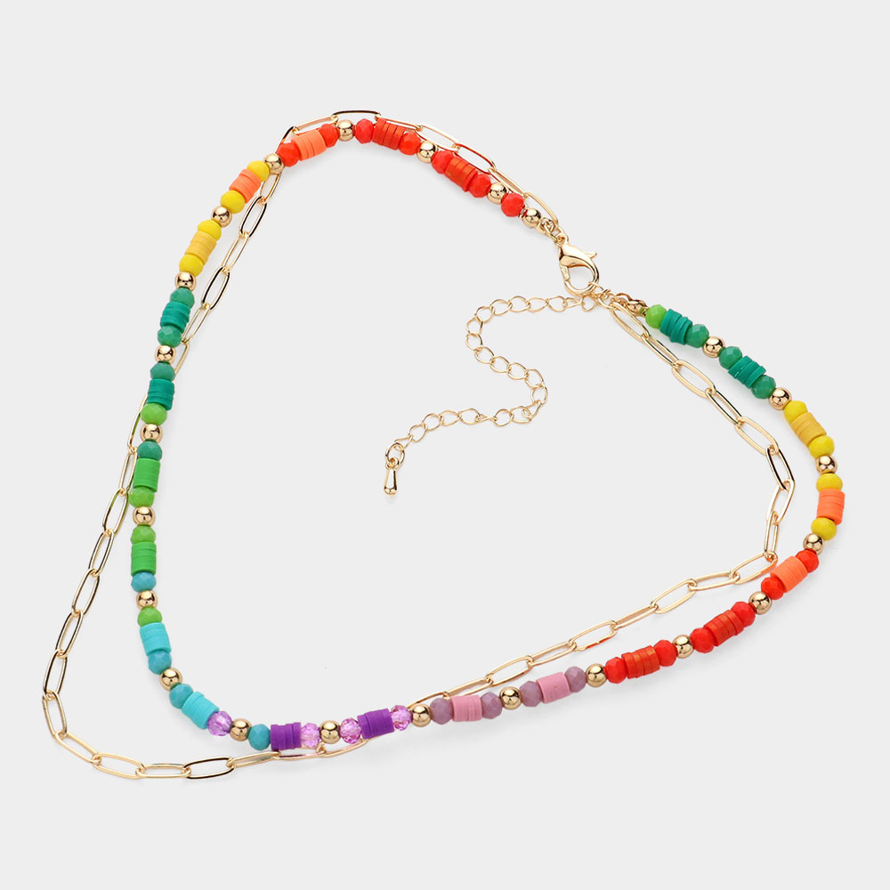 Polished Metal Accent Resin Pebble Beaded Stretch Bracelet