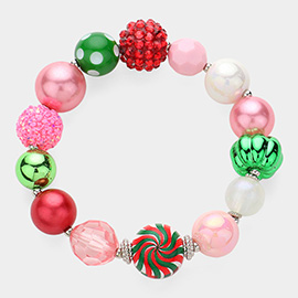 7PCS - Metal Crescent Charm Pointed Various Beads Beaded Stretch Multi Layered Bracelets