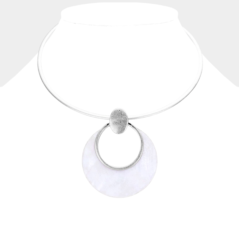 Hollow Round Mother of Pearl Metal Choker Necklace