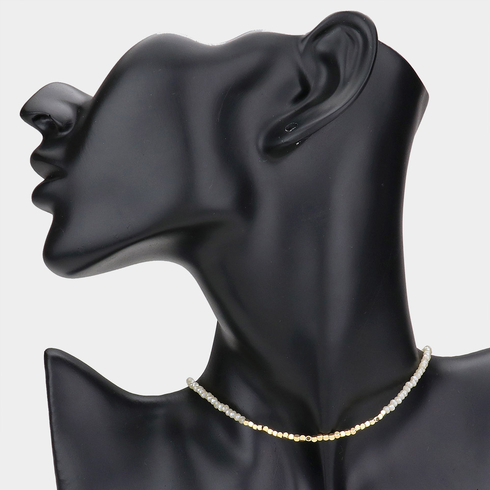 Metal Cube Accented Faceted Beaded Choker Necklace