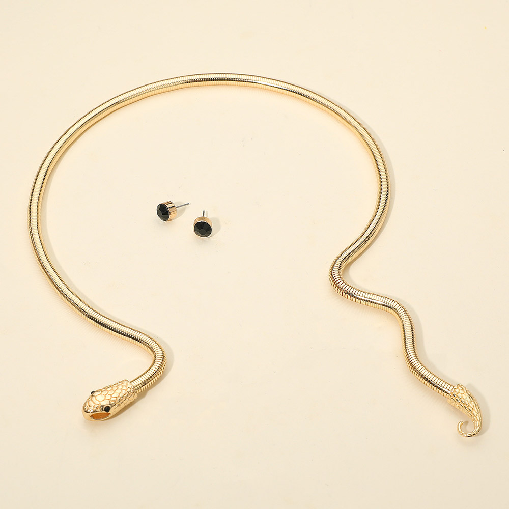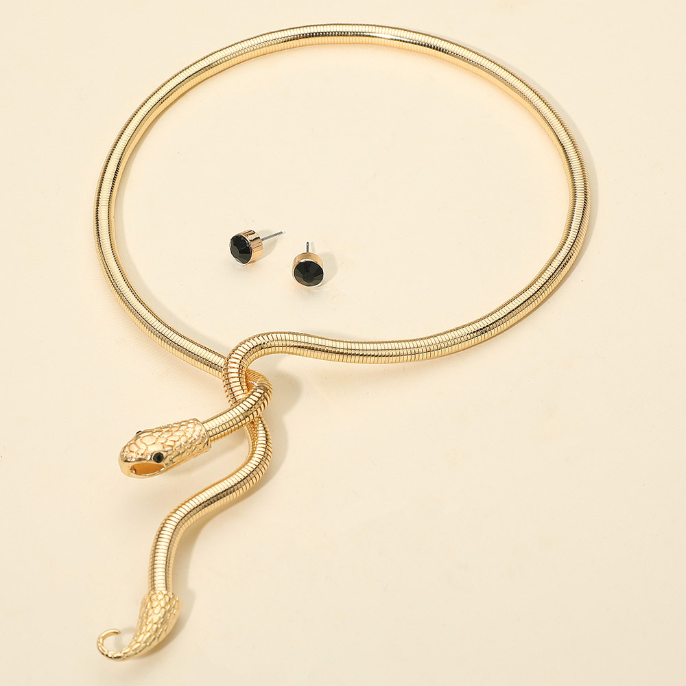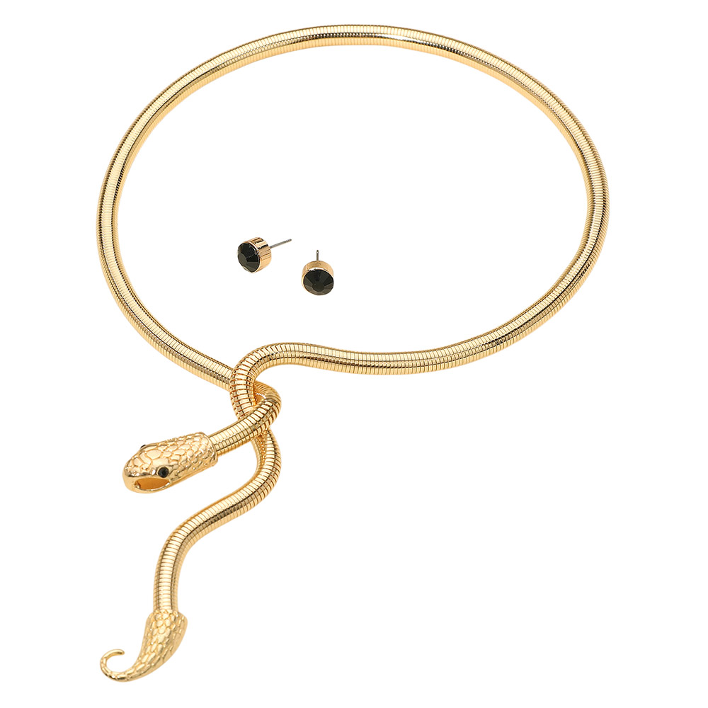 Details • Necklace Size : 21" L • Decor Size : 0.7" L • Earrings Size : 0.3" L • Make a fierce statement with this snake necklace and matching earrings set. Designed with a serpent-inspired motif, this bold jewelry adds edgy sophistication to any outfit. Perfect for parties, themed events, or standout fashion moments, it’s a striking choice for confident, stylish looks. • Lead and Nickel Compliant