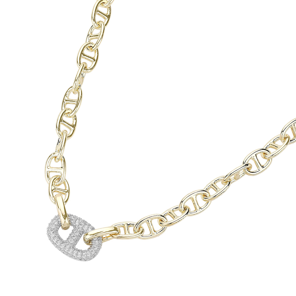 14K Gold Plated CZ Stone Paved Mariner Link Accented Necklace