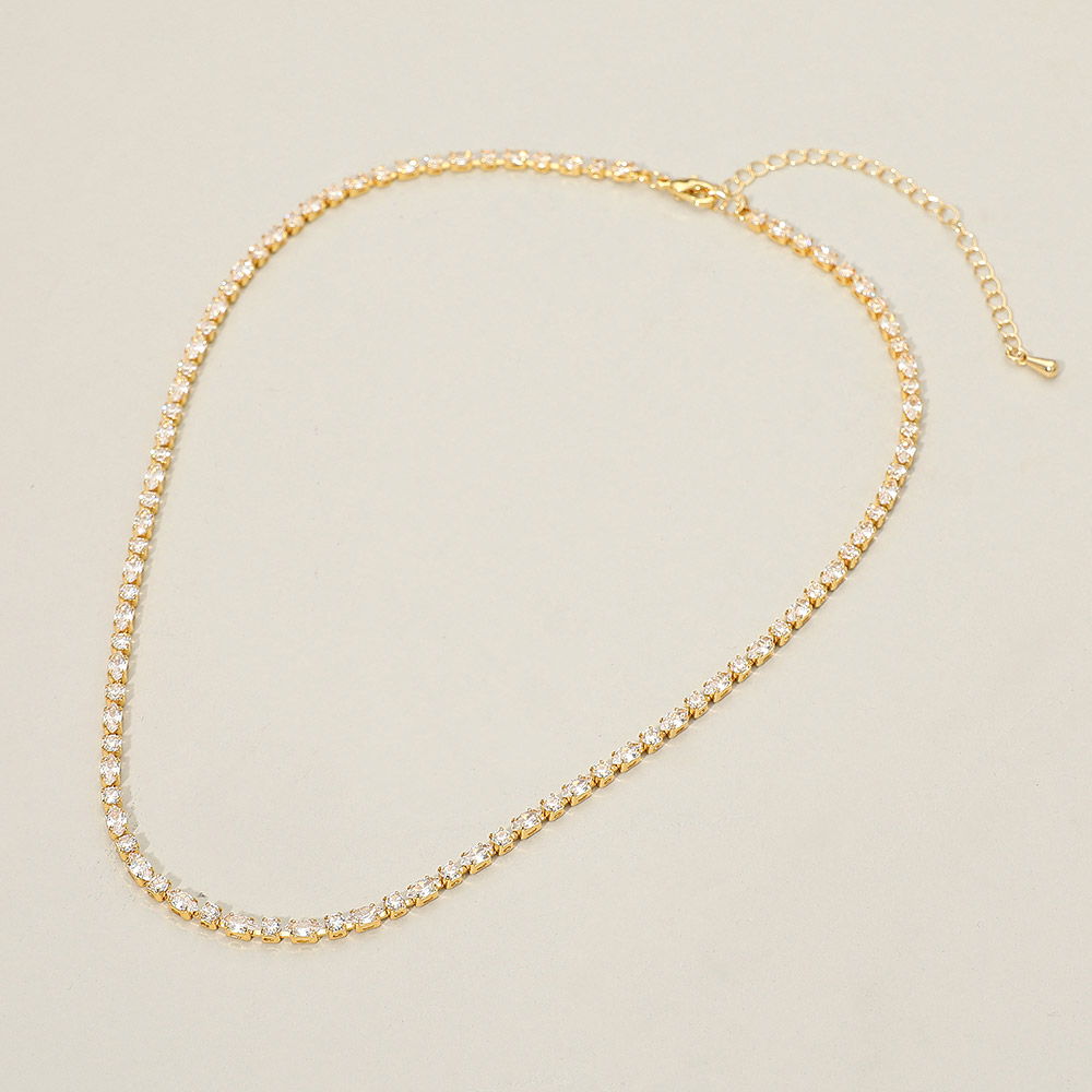 18K Gold Dipped Delicate Round Marquise Tennis Chain Necklace 18K Gold Dipped Delicate Round Marquise Tennis Chain Necklace 18K Gold Dipped Delicate Round Marquise Tennis Chain Necklace