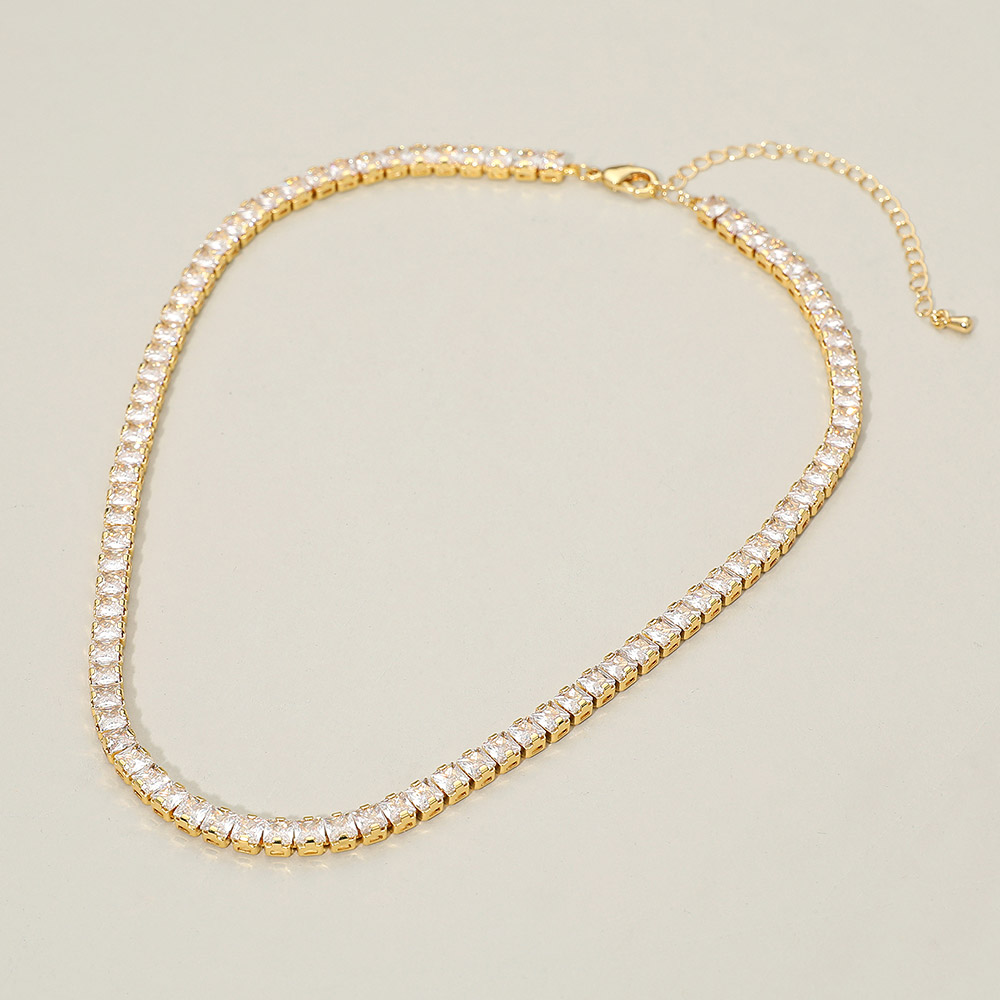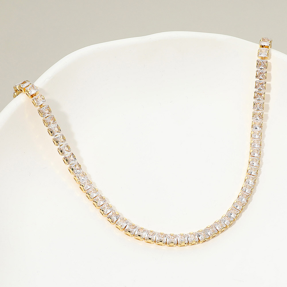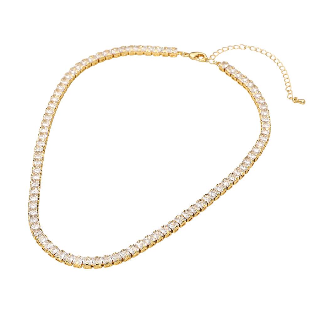 18K Gold Dipped Square Tennis Chain Necklace 18K Gold Dipped Square Tennis Chain Necklace 18K Gold Dipped Square Tennis Chain Necklace