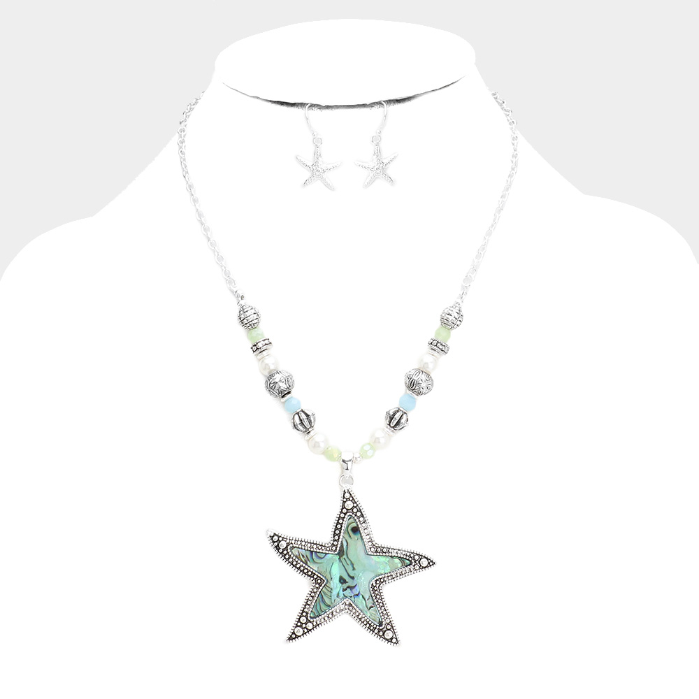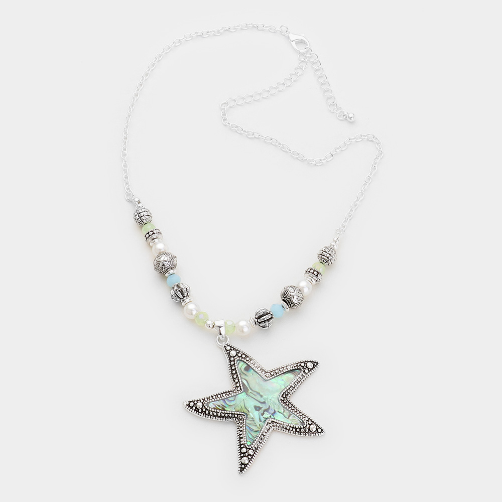 Stone Pointed Abalone Sea Glass Starfish Dangle Earrings