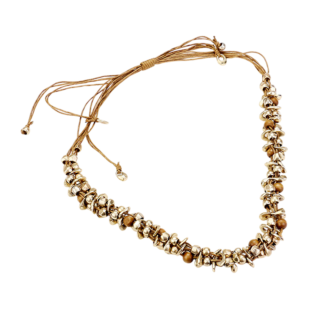 Chunky Metal Bead Coated Cord Adjustable Cinch Pull Tie Bracelet