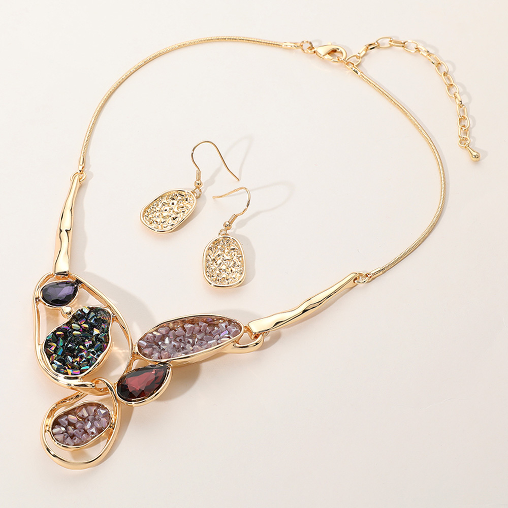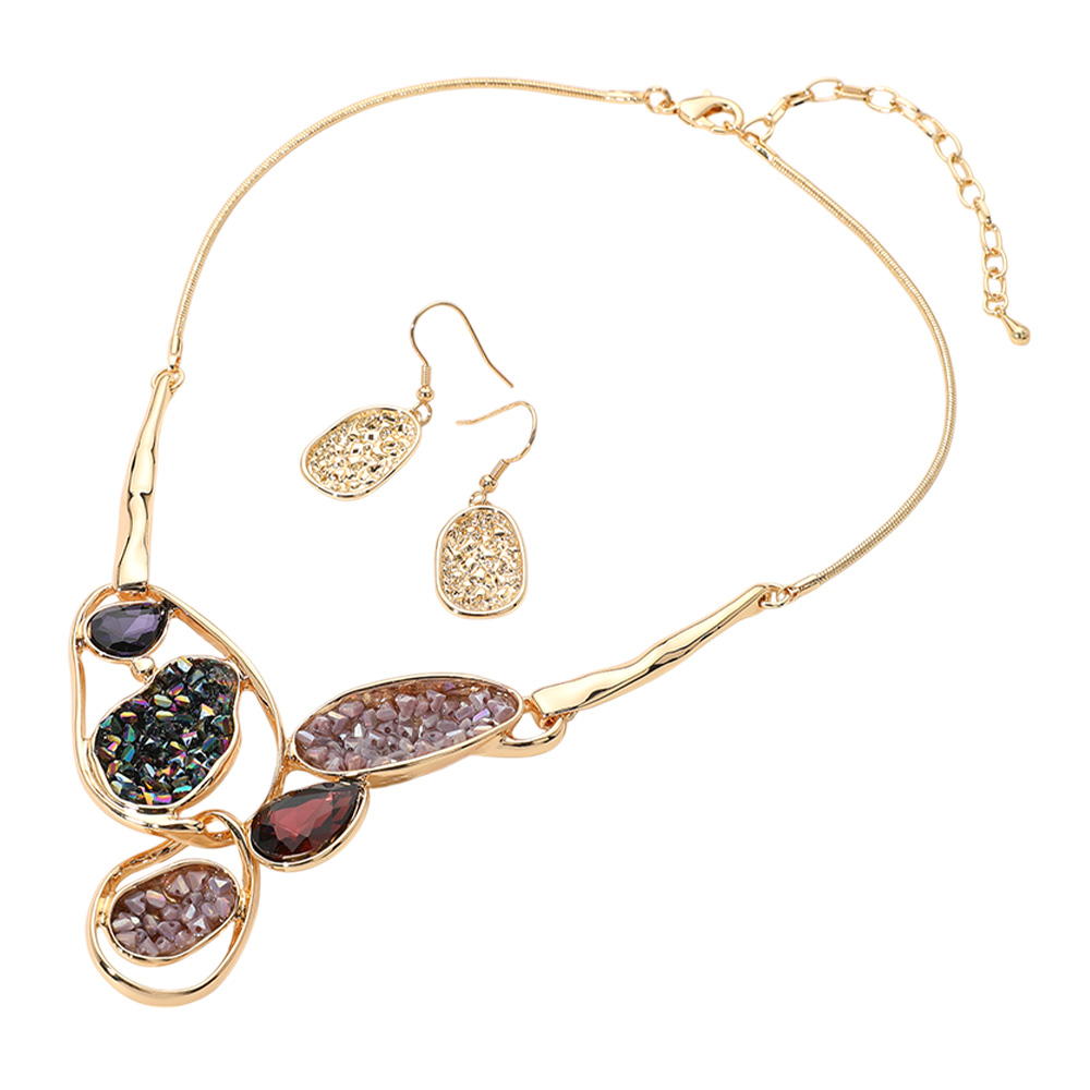 Chunky Bold Resin Pebble Plate Link Statement Necklace