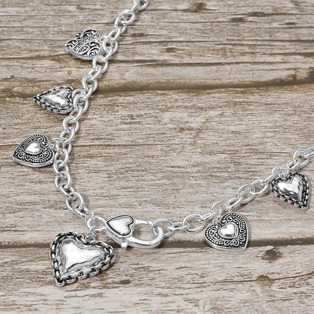 Antique Metal Heart Charm Station Toggle Bracelet