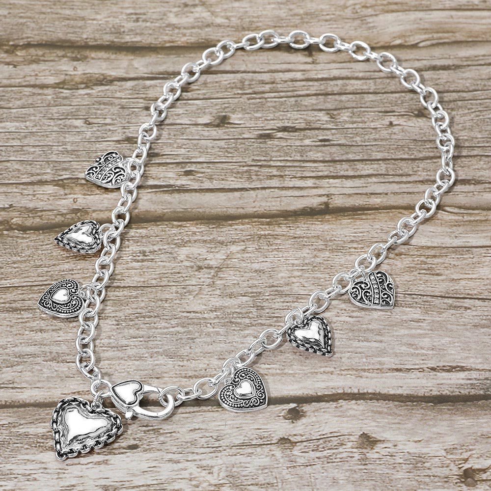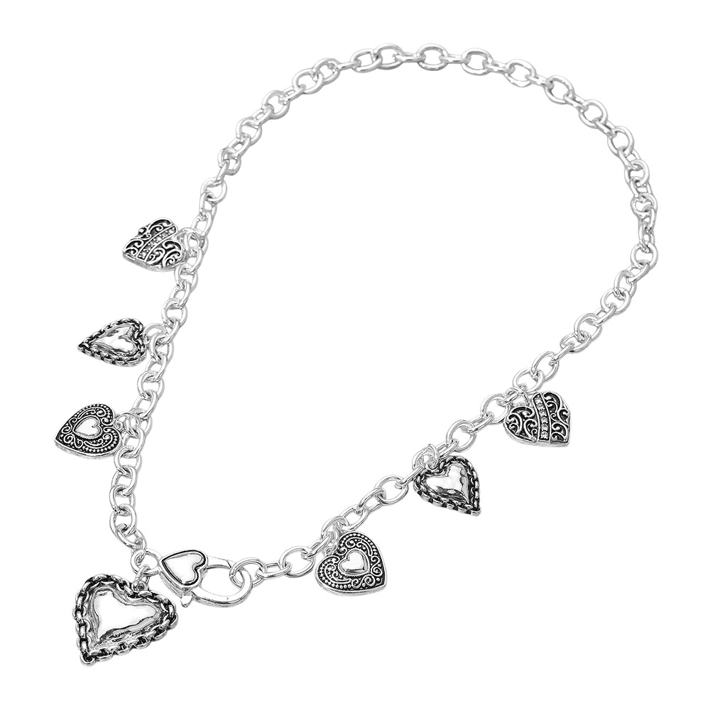 Antique Metal Heart Charm Station Necklace Antique Metal Heart Charm Station Necklace Antique Metal Heart Charm Station Necklace