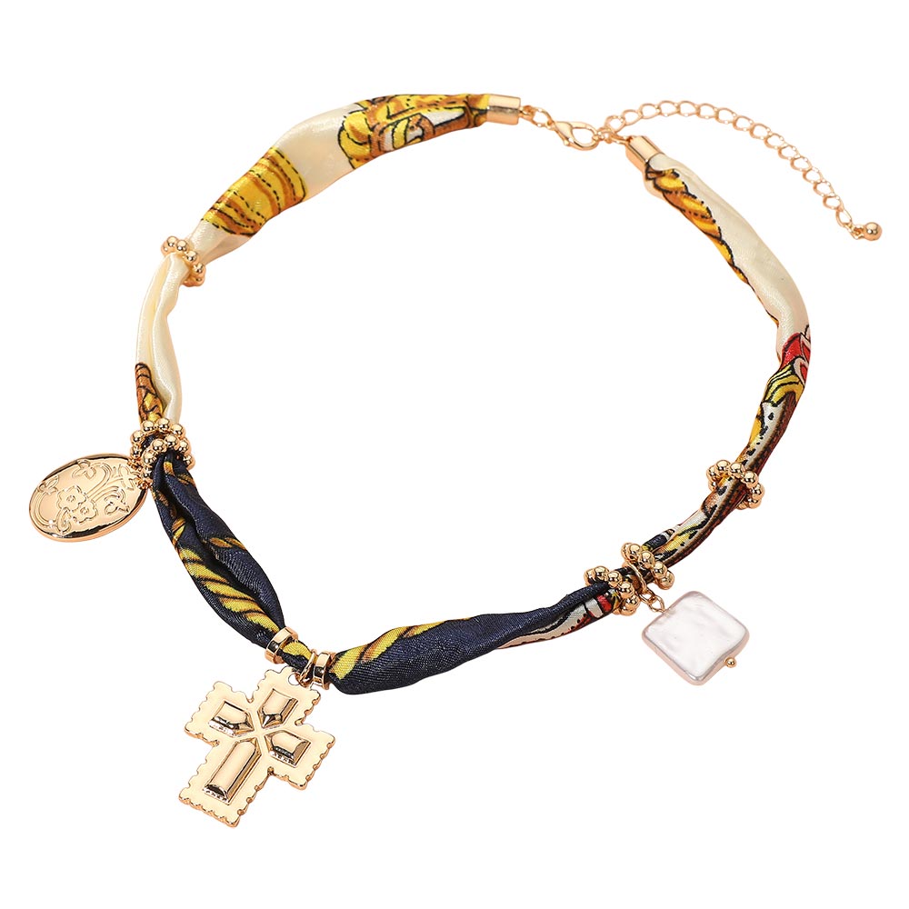 Boho Metal Cross Square Pearl Floral Oval Charm Fabric Necklace Boho Metal Cross Square Pearl Floral Oval Charm Fabric Necklace