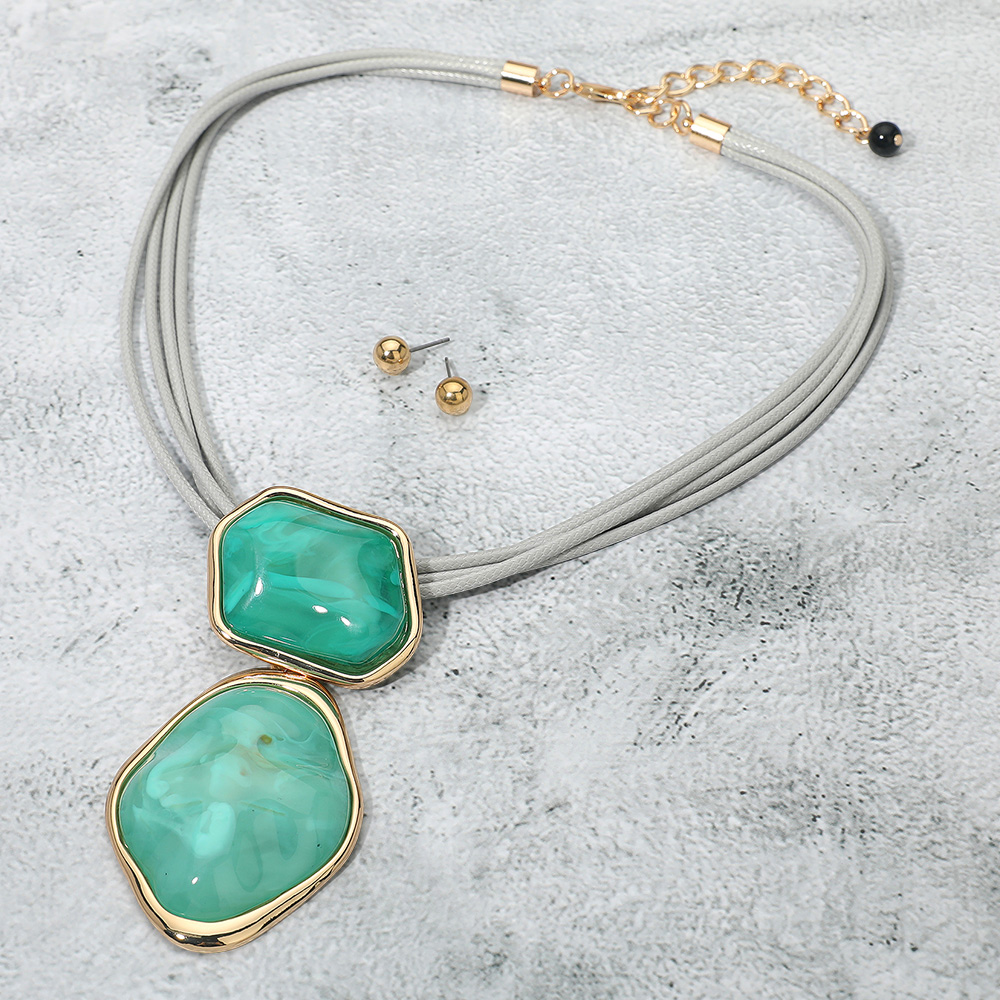 Details • Necklace Size : 19" + 4" L • Decor Size : 3.75" L • Earrings Size : 0.25" L • Bold pendant necklace paired with coordinating stud earrings for a complete look. The unique layered design adds eye-catching detail, making this set perfect for elevating casual outfits or complementing evening attire with effortless elegance. • Lead and Nickel Compliant