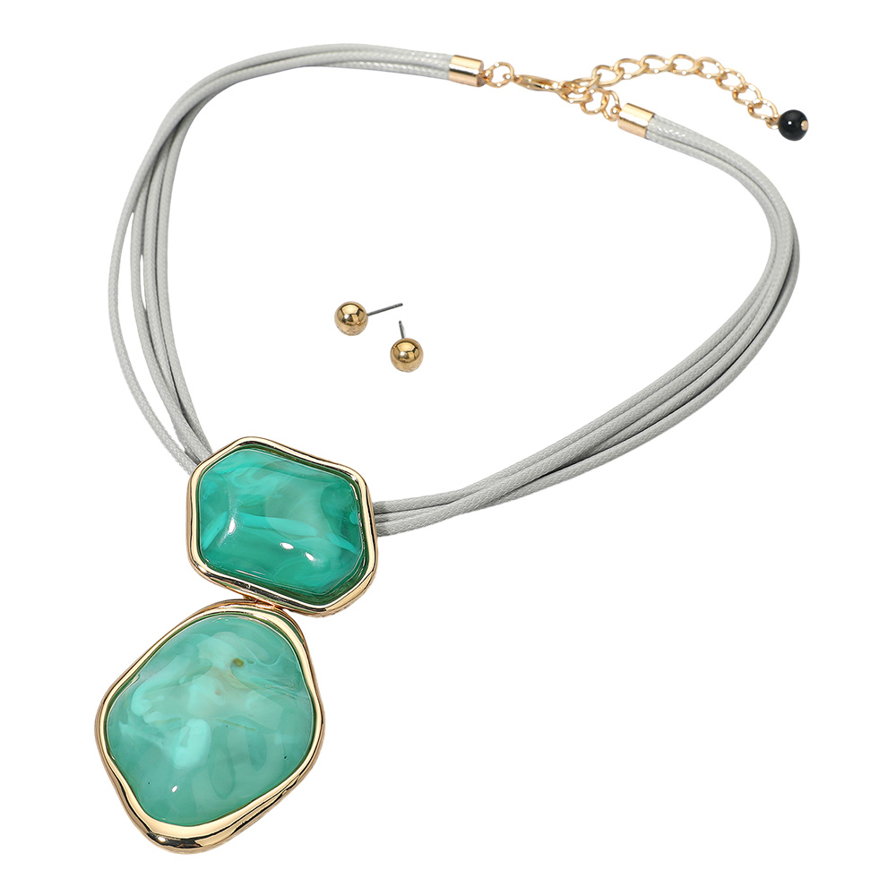 Bold Abstract Double Resin Link Pendant Statement Necklace