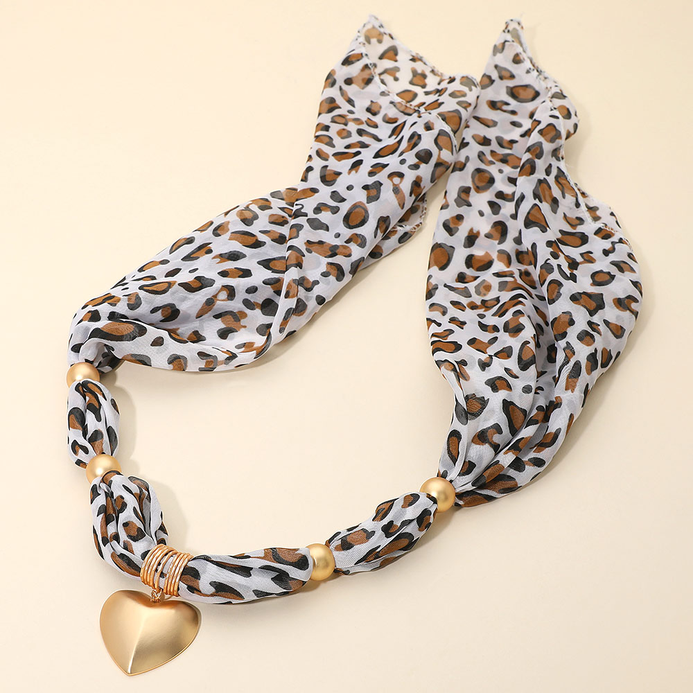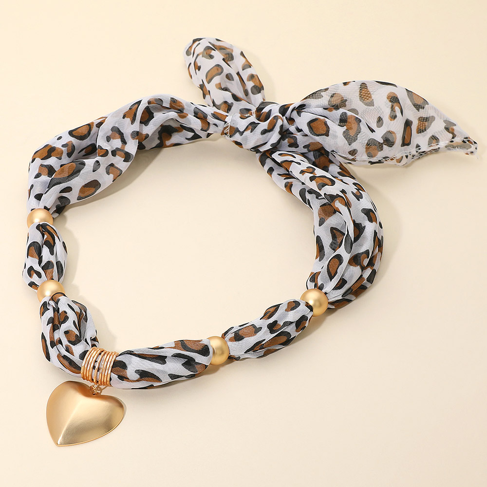 Bold Brushed Heart Pendant Leopard Print Fabric Scarf Necklace