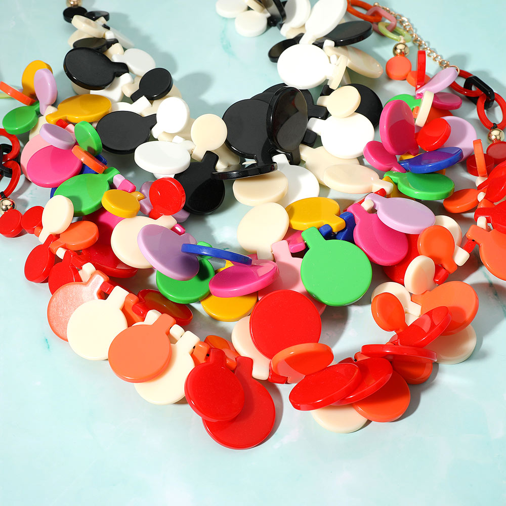 Bold Colorful Resin Disc Beaded Statement Necklace