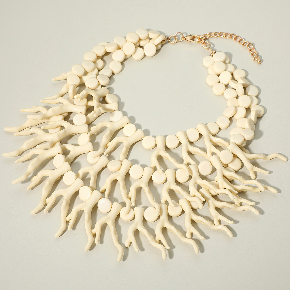• Striking coral inspired statement necklace featuring layered branch-like accents that create dramatic texture and movement. A bold fashion accessory designed to stand out, this unique piece adds artistic flair and elegance, making it perfect for evening events or standout everyday style.