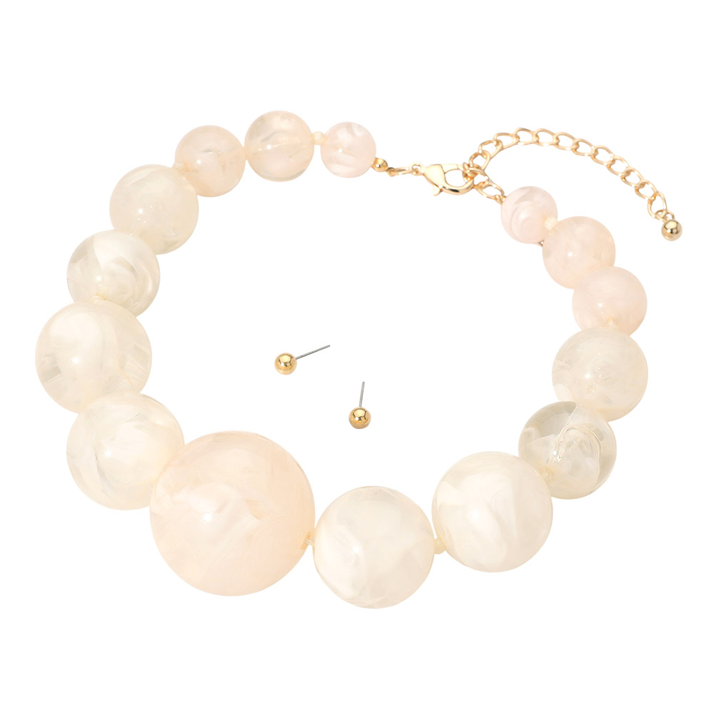 Bold Marbled Resin Ball Beaded Statement Necklace